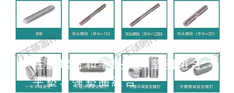緊定螺釘 Slotted set srews with full dog point 開槽平端 緊定螺釘(半牙) Slotted set srews with chamfered end 小六角特薄細牙 螺母 Pip nuts with thread 外舌止動墊圈 External tap 小墊圈 (用于圓柱頭螺釘)