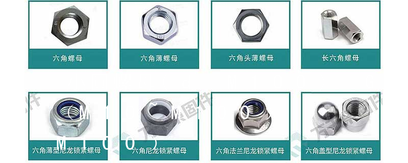 GB6175Ⅱ型六角螺母——A、B級 GB6176Ⅱ型六角螺母——細牙—A、B級 GB6177六角法蘭面螺母—A級 GB55六角厚螺母 GB56六角超厚螺母 GB1229大六角螺母(鋼結構用高強度)公制螺栓的等級有:4.6;4.8;5.8;6.8;8.8; · 小圓螺母GB 810-88 · 圓螺母 GB 812-88 端面帶孔圓螺母 GB 815-88 · 側面帶孔圓螺母 GB 816-88 · 帶槽圓螺母 GB 817-88 · 1型非金屬嵌件六角鎖緊螺母 GB /T 889.1-2000 · 1型非金屬嵌件六角鎖