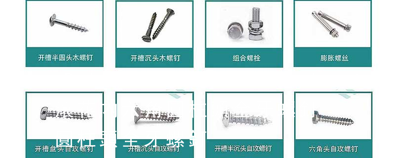 DIN912內六角圓柱頭螺釘,對應GB70-85。DIN931六角頭螺栓(半牙),對應GB5782-86。DIN933六角頭螺栓(全牙),對應GB5783-86。DIN934六角頭螺母(1型),對應GB6170-86。 柱端機米)、沉頭內六角螺釘(平杯)、半圓頭內六角螺釘(圓杯)、十字槽盤頭機螺釘、十字槽沉頭機螺釘、十字槽大扁頭機螺釘、十字槽盤頭自攻釘、十字槽沉頭自攻釘、十字槽大扁頭自攻釘、全牙絲桿(牙條)、六角螺母、法蘭