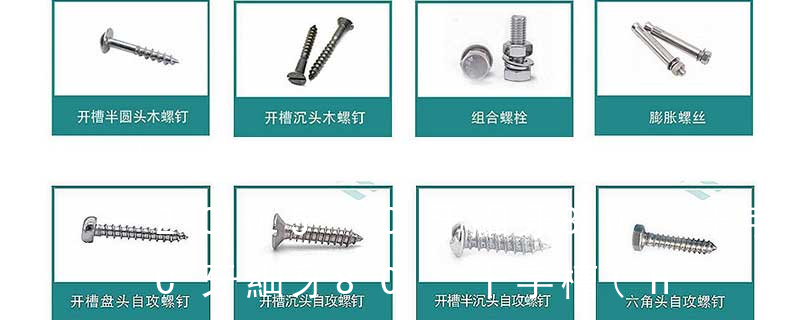 螺栓有:1、方頭螺栓,2、半圓頭方頸螺栓,3、十字槽盤頭螺釘,4、內六角沉頭螺釘,5、方螺母C級,6、蝶形螺母,7、六角頭螺栓,8、十字槽盤頭自攻螺釘。大小有M18、M6、M8、M16、M10、M12、M14、M20等型號。通常用