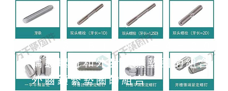 SJ 2833-1987 電視接收機用緊固件 十字槽自攻鎖緊螺釘技術條件SJ 2834-1987 電視接收機用緊固件 十字槽盤頭帶平墊圈的組合螺釘SJ 2835-1987 電視接收機用緊固件 十字槽盤頭帶彈簧墊圈的組合螺釘SJ 2836-1987 電視接收機用緊固件 十字 2、螺柱:沒有頭部的,僅有兩端均外帶螺紋的一類緊固件。屬于可拆卸連接。主要用于被連接零件之一厚度較大、要求結構緊湊,或因拆卸頻繁,不宜采用螺栓連接的場合。3、螺釘:也是由頭部和螺桿兩部分構成的一類緊固件,機器