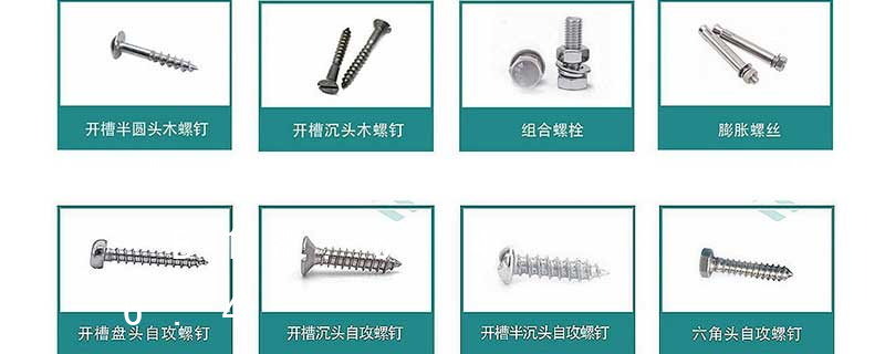 1.機螺釘 2.自攻螺釘 3.鉆尾螺釘 4.墻板釘 5.纖維板釘 6.木螺釘7.六角木螺釘 8.不脫出螺釘 9.組合螺釘 10.微型螺釘 11.家具螺釘 12.電子螺釘 13.鏈帶螺釘頭型 :1.六角頭(hexagon head)2.六角頭法蘭面(hexagon head with flange)3.方頭(square head)4.T形頭T head (hammer head5. 自攻螺釘選用通常的規則:自攻為4個螺距,機械螺釘為3個螺距,這是最小的旋合長度,按照實驗的條件會有所加長。每一個自攻螺釘都是由頭部、桿部和桿部末端三部分組成的。每一個自攻螺釘的構成都有四大要素:頭部形狀、扳擰方式、螺紋種類、末端形式。螺紋種類繁多,有自攻螺紋(寬牙螺紋)、機螺紋(